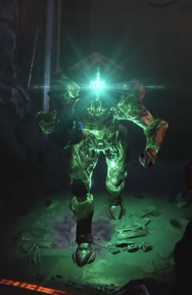 This image is a screenshot of a character or AI unit from the Destiny series of first-person shooter video games developed by Bungie Studios and published by Bungie or Activision. It falls under the screenshot category for a copyrighted computer game or video game, and the copyright for it is most likely held by the company that developed the game. It is believed that the use of a limited number of web-resolution screenshots: