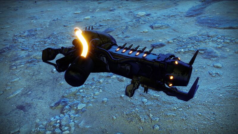 This image is a screenshot of a weapon from the Destiny series of first-person shooter video games developed by Bungie Studios and published by Bungie or Activision. It falls under the screenshot category for a copyrighted computer game or video game, and the copyright for it is most likely held by the company that developed the game. It is believed that the use of a limited number of web-resolution screenshots: