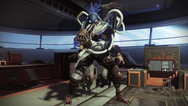 This image is a screenshot of a character or AI unit from the Destiny series of first-person shooter video games developed by Bungie Studios and published by Bungie or Activision. It falls under the screenshot category for a copyrighted computer game or video game, and the copyright for it is most likely held by the company that developed the game. It is believed that the use of a limited number of web-resolution screenshots: