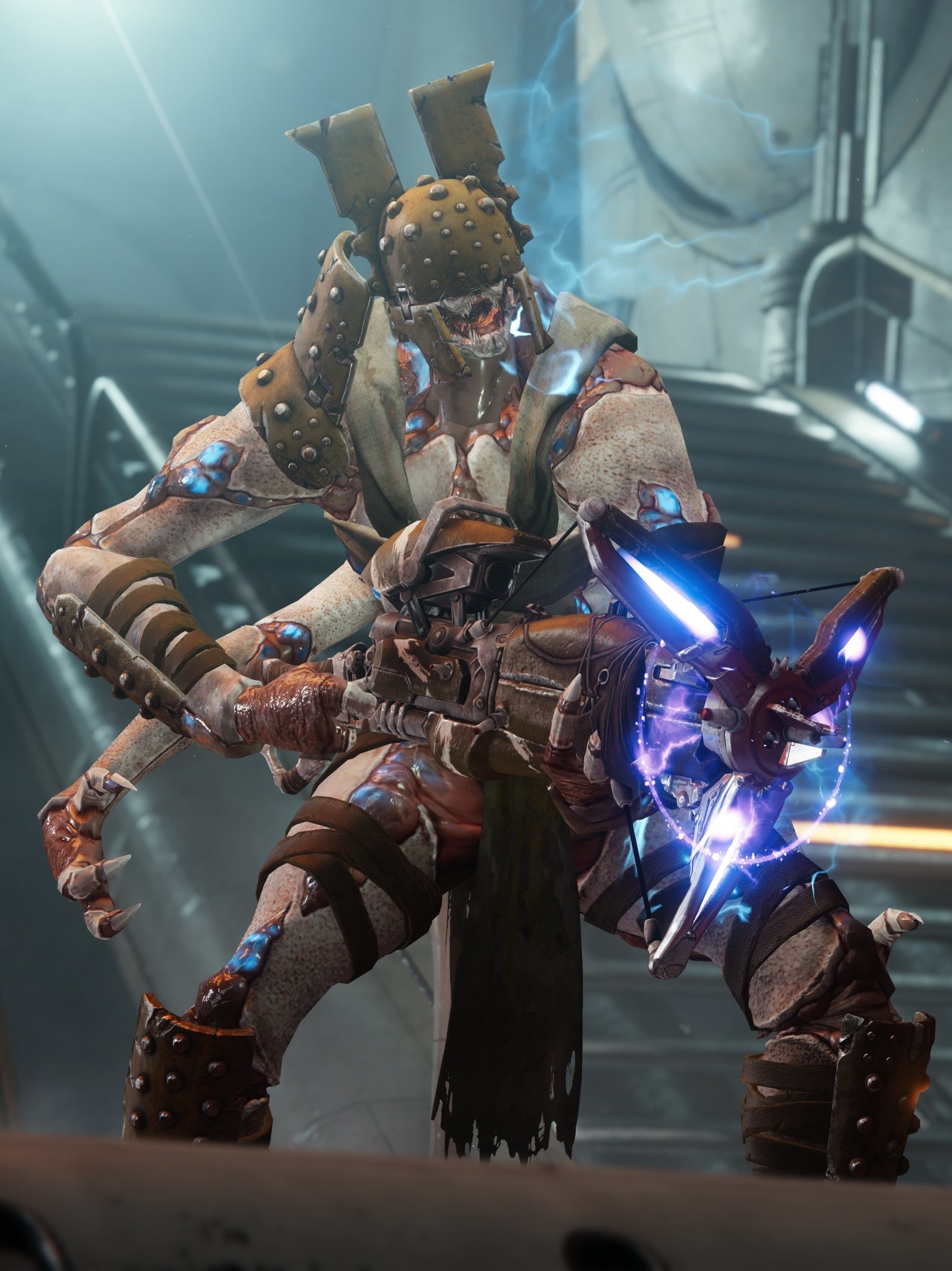 This image is a screenshot of a character or AI unit from the Destiny series of first-person shooter video games developed by Bungie Studios and published by Bungie or Activision. It falls under the screenshot category for a copyrighted computer game or video game, and the copyright for it is most likely held by the company that developed the game. It is believed that the use of a limited number of web-resolution screenshots: