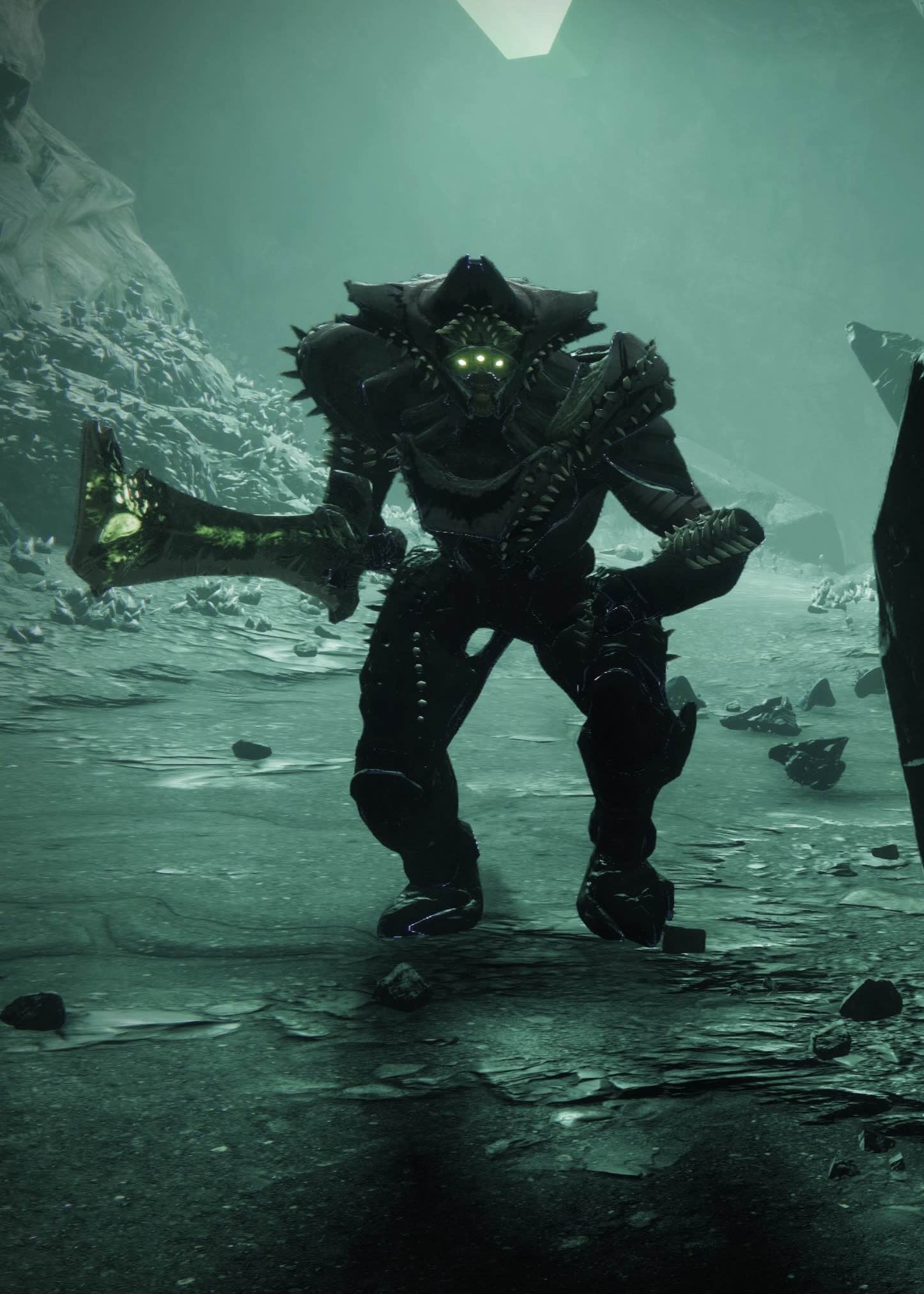 This image is a screenshot of a character or AI unit from the Destiny series of first-person shooter video games developed by Bungie Studios and published by Bungie or Activision. It falls under the screenshot category for a copyrighted computer game or video game, and the copyright for it is most likely held by the company that developed the game. It is believed that the use of a limited number of web-resolution screenshots: