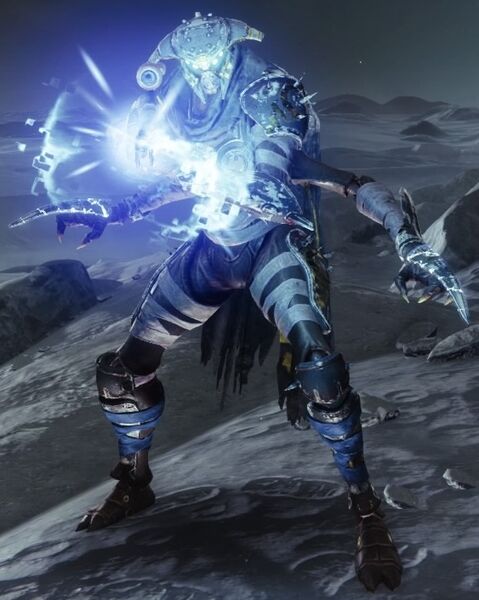 This image is a screenshot of a character or AI unit from the Destiny series of first-person shooter video games developed by Bungie Studios and published by Bungie or Activision. It falls under the screenshot category for a copyrighted computer game or video game, and the copyright for it is most likely held by the company that developed the game. It is believed that the use of a limited number of web-resolution screenshots: