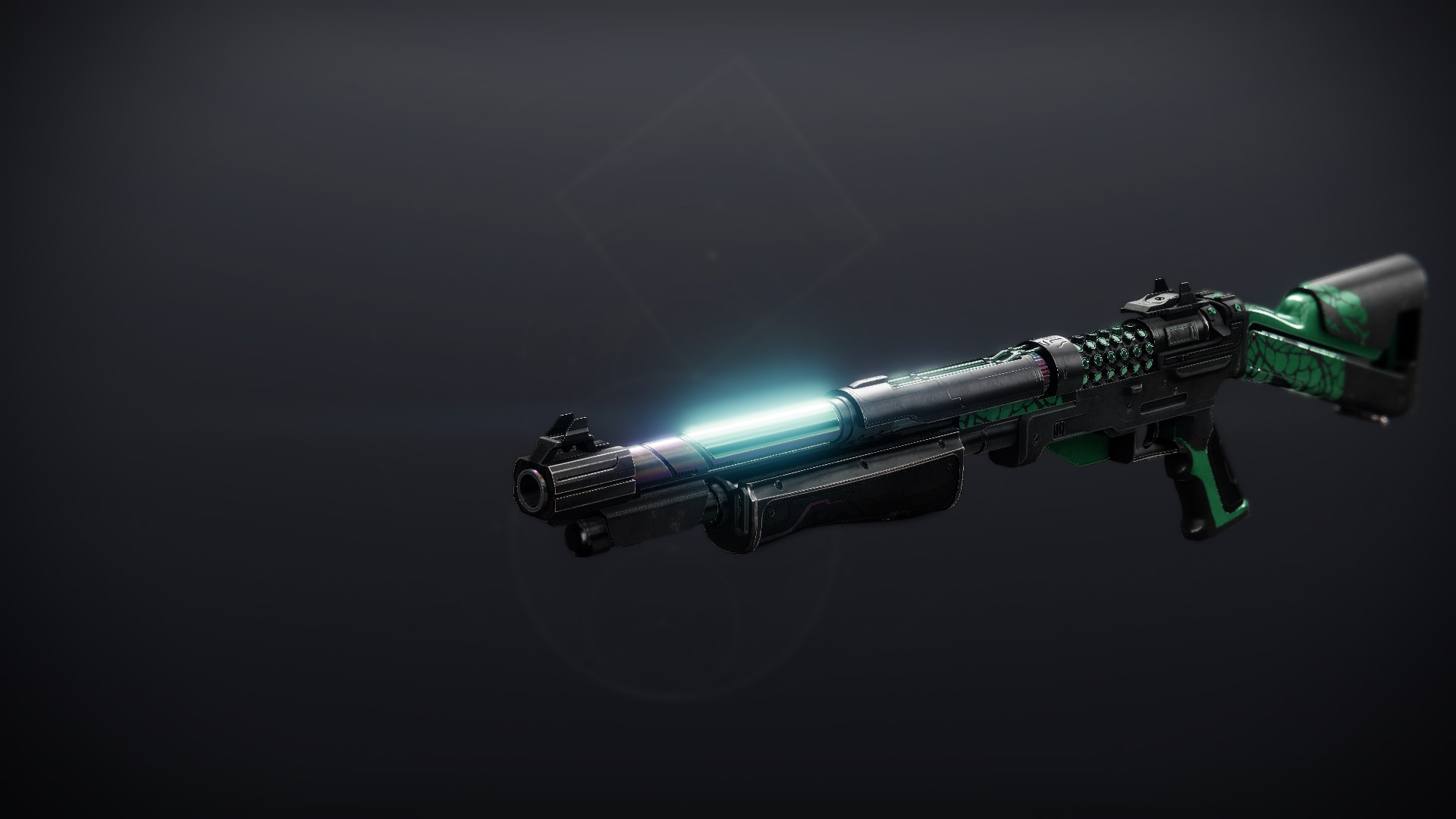 This image is a screenshot of a weapon from the Destiny series of first-person shooter video games developed by Bungie Studios and published by Bungie or Activision. It falls under the screenshot category for a copyrighted computer game or video game, and the copyright for it is most likely held by the company that developed the game. It is believed that the use of a limited number of web-resolution screenshots: