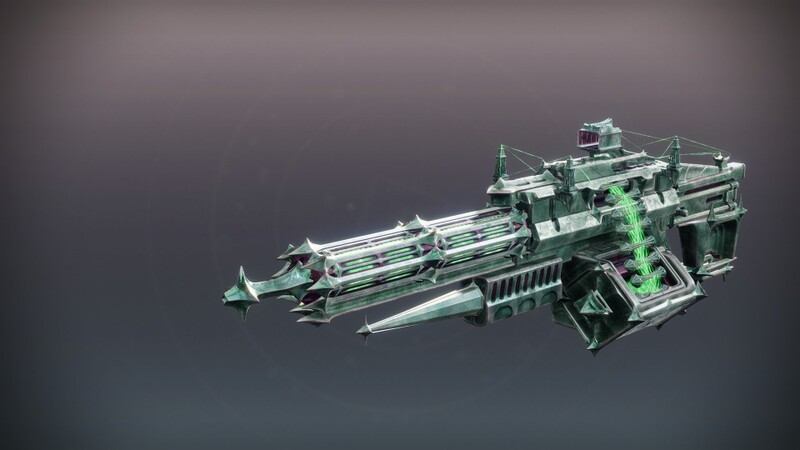 This image is a screenshot of a weapon from the Destiny series of first-person shooter video games developed by Bungie Studios and published by Bungie or Activision. It falls under the screenshot category for a copyrighted computer game or video game, and the copyright for it is most likely held by the company that developed the game. It is believed that the use of a limited number of web-resolution screenshots: