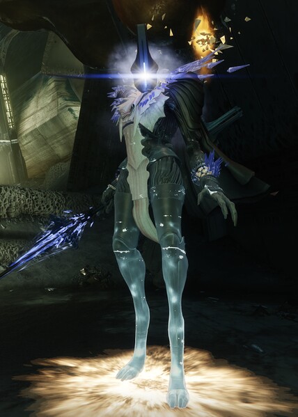 This image is a screenshot of a character or AI unit from the Destiny series of first-person shooter video games developed by Bungie Studios and published by Bungie or Activision. It falls under the screenshot category for a copyrighted computer game or video game, and the copyright for it is most likely held by the company that developed the game. It is believed that the use of a limited number of web-resolution screenshots: