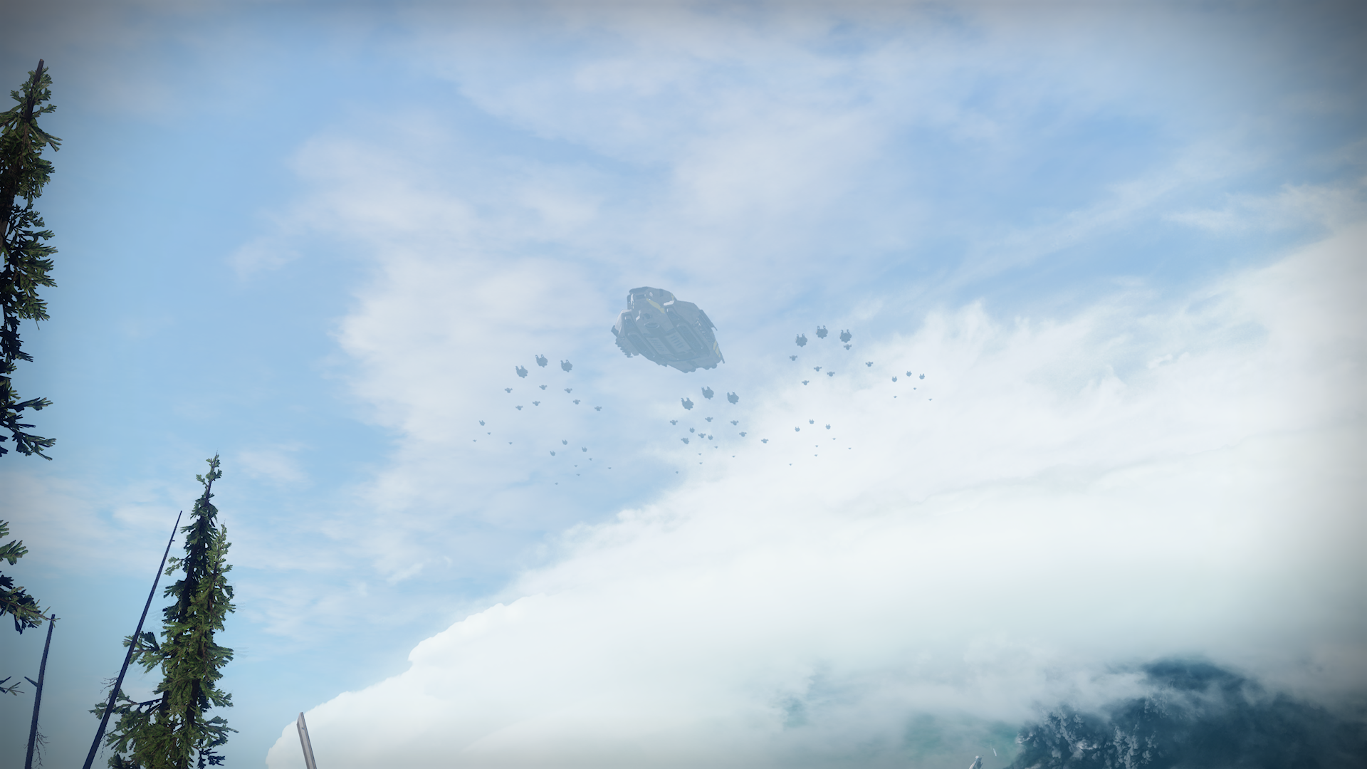 This image is a screenshot of a vehicle from the Destiny series of first-person shooter video games developed by Bungie Studios and published by Bungie or Activision. It falls under the screenshot category for a copyrighted computer game or video game, and the copyright for it is most likely held by the company that developed the game. It is believed that the use of a limited number of web-resolution screenshots: