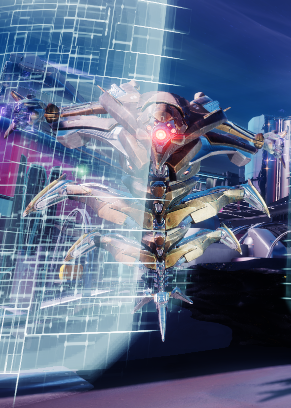 This image is a screenshot of a character or AI unit from the Destiny series of first-person shooter video games developed by Bungie Studios and published by Bungie or Activision. It falls under the screenshot category for a copyrighted computer game or video game, and the copyright for it is most likely held by the company that developed the game. It is believed that the use of a limited number of web-resolution screenshots: