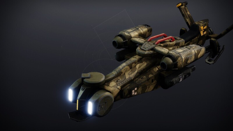 This image is a screenshot of a vehicle from the Destiny series of first-person shooter video games developed by Bungie Studios and published by Bungie or Activision. It falls under the screenshot category for a copyrighted computer game or video game, and the copyright for it is most likely held by the company that developed the game. It is believed that the use of a limited number of web-resolution screenshots: