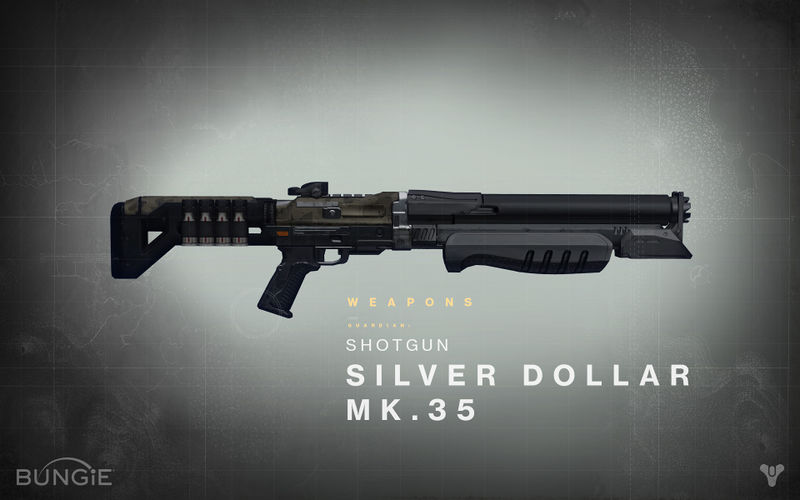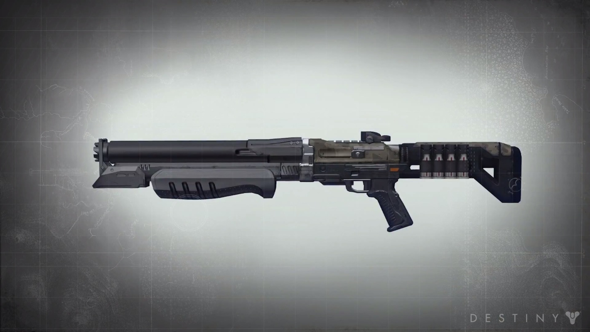 This image is a screenshot of a weapon from the Destiny series of first-person shooter video games developed by Bungie Studios and published by Bungie or Activision. It falls under the screenshot category for a copyrighted computer game or video game, and the copyright for it is most likely held by the company that developed the game. It is believed that the use of a limited number of web-resolution screenshots: