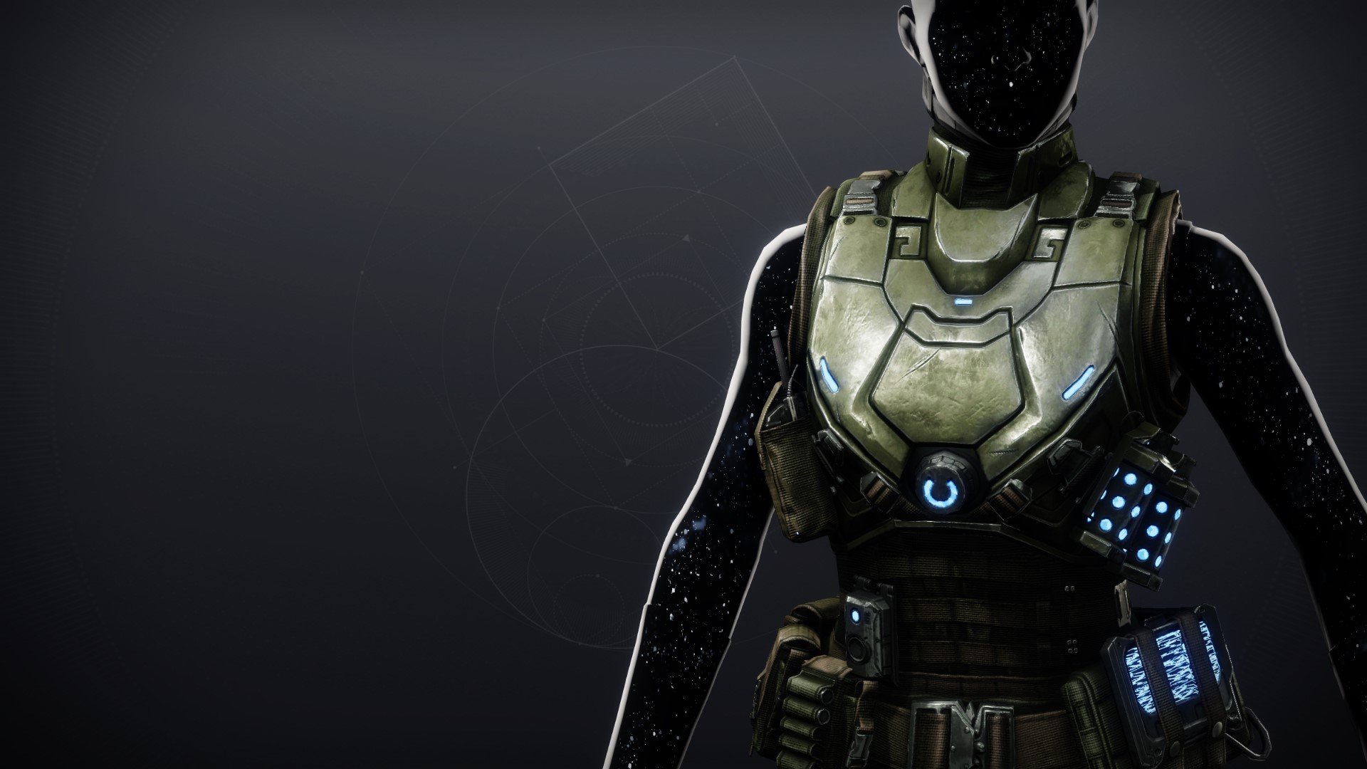 This image is a screenshot of armor from the Destiny series of first-person shooter video games developed by Bungie Studios and published by Bungie or Activision. It falls under the screenshot category for a copyrighted computer game or video game, and the copyright for it is most likely held by the company that developed the game. It is believed that the use of a limited number of web-resolution screenshots: