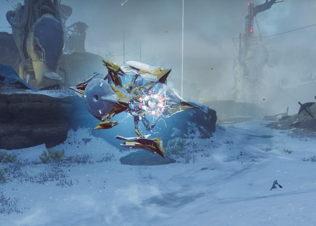 This image is a screenshot of a character or AI unit from the Destiny series of first-person shooter video games developed by Bungie Studios and published by Bungie or Activision. It falls under the screenshot category for a copyrighted computer game or video game, and the copyright for it is most likely held by the company that developed the game. It is believed that the use of a limited number of web-resolution screenshots: