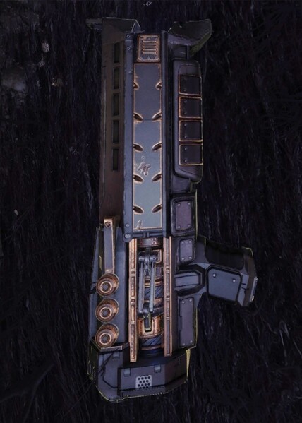 This image is a screenshot of a weapon from the Destiny series of first-person shooter video games developed by Bungie Studios and published by Bungie or Activision. It falls under the screenshot category for a copyrighted computer game or video game, and the copyright for it is most likely held by the company that developed the game. It is believed that the use of a limited number of web-resolution screenshots: