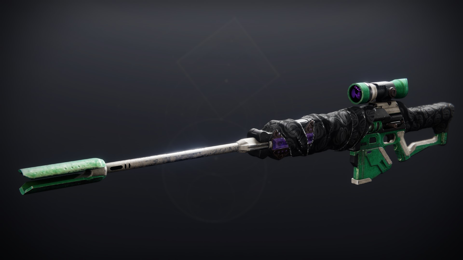 This image is a screenshot of a weapon from the Destiny series of first-person shooter video games developed by Bungie Studios and published by Bungie or Activision. It falls under the screenshot category for a copyrighted computer game or video game, and the copyright for it is most likely held by the company that developed the game. It is believed that the use of a limited number of web-resolution screenshots: