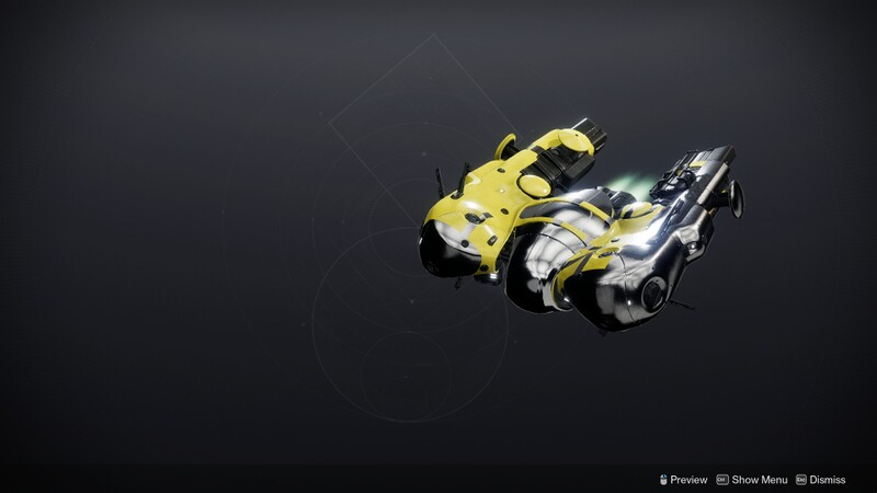 This image is a screenshot of a vehicle from the Destiny series of first-person shooter video games developed by Bungie Studios and published by Bungie or Activision. It falls under the screenshot category for a copyrighted computer game or video game, and the copyright for it is most likely held by the company that developed the game. It is believed that the use of a limited number of web-resolution screenshots: