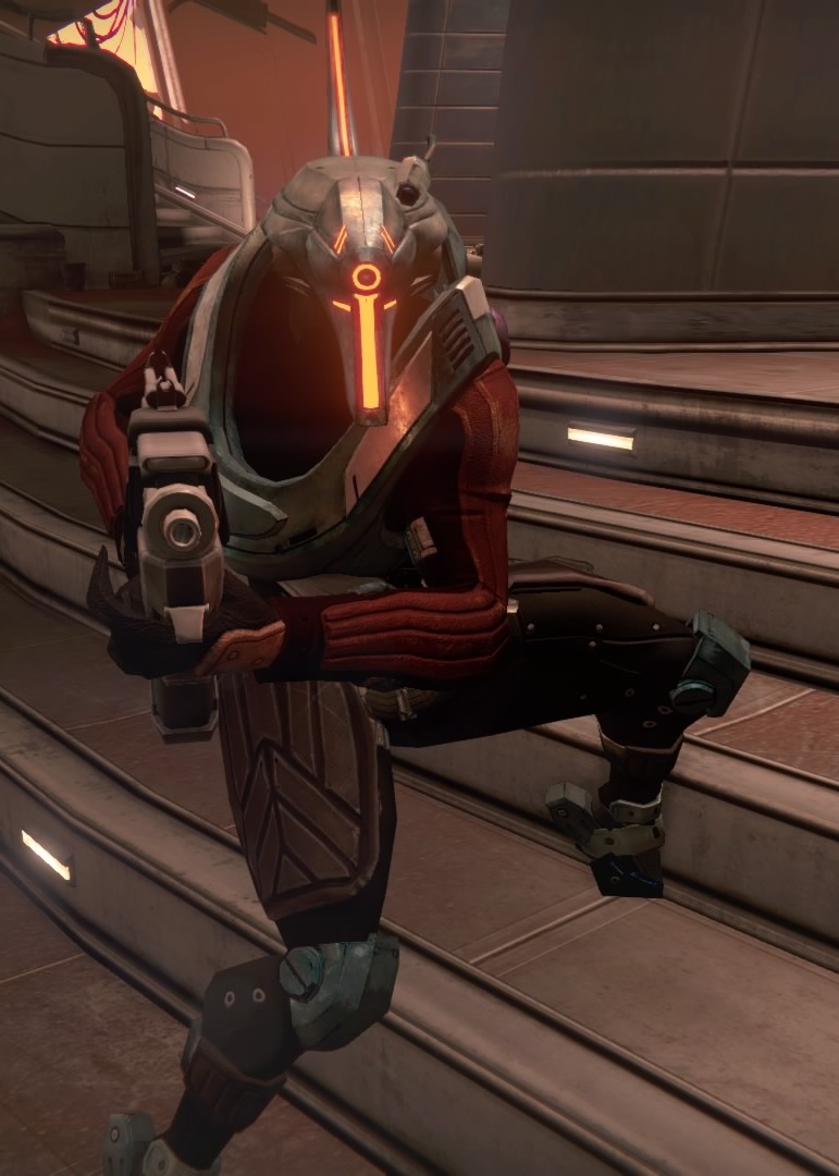 This image is a screenshot of a character or AI unit from the Destiny series of first-person shooter video games developed by Bungie Studios and published by Bungie or Activision. It falls under the screenshot category for a copyrighted computer game or video game, and the copyright for it is most likely held by the company that developed the game. It is believed that the use of a limited number of web-resolution screenshots: