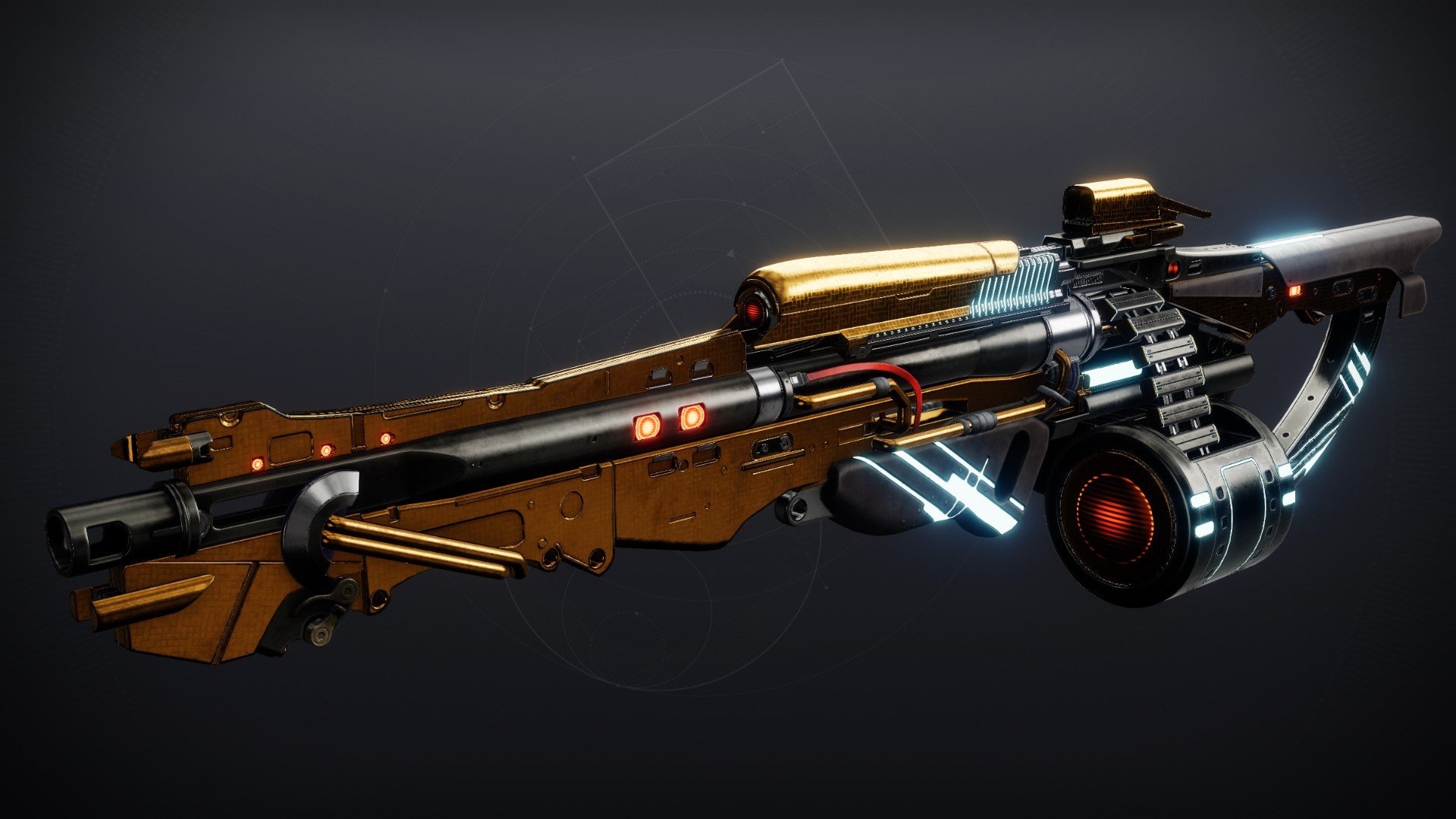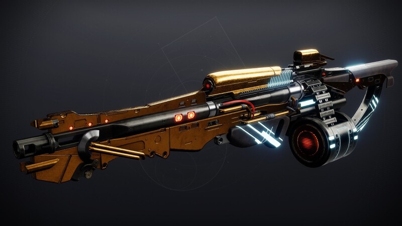 This image is a screenshot of a weapon from the Destiny series of first-person shooter video games developed by Bungie Studios and published by Bungie or Activision. It falls under the screenshot category for a copyrighted computer game or video game, and the copyright for it is most likely held by the company that developed the game. It is believed that the use of a limited number of web-resolution screenshots: