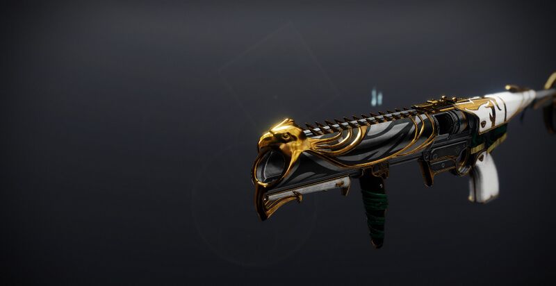 This image is a screenshot of a weapon from the Destiny series of first-person shooter video games developed by Bungie Studios and published by Bungie or Activision. It falls under the screenshot category for a copyrighted computer game or video game, and the copyright for it is most likely held by the company that developed the game. It is believed that the use of a limited number of web-resolution screenshots: