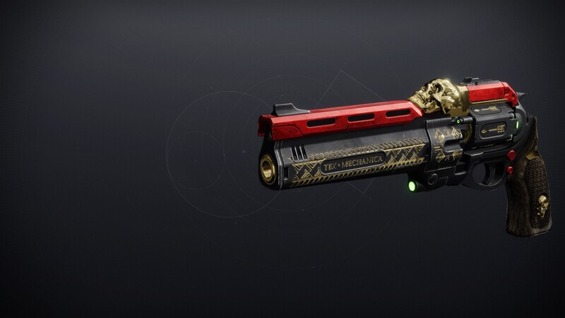 This image is a screenshot of a weapon from the Destiny series of first-person shooter video games developed by Bungie Studios and published by Bungie or Activision. It falls under the screenshot category for a copyrighted computer game or video game, and the copyright for it is most likely held by the company that developed the game. It is believed that the use of a limited number of web-resolution screenshots: