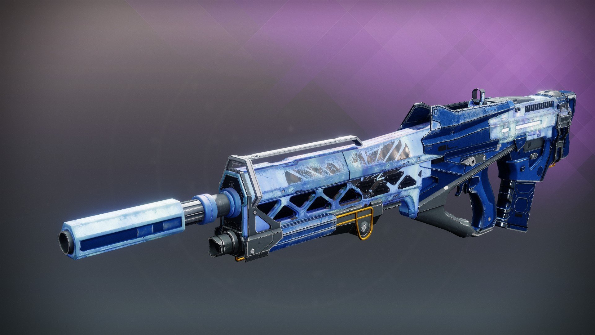 This image is a screenshot of a weapon from the Destiny series of first-person shooter video games developed by Bungie Studios and published by Bungie or Activision. It falls under the screenshot category for a copyrighted computer game or video game, and the copyright for it is most likely held by the company that developed the game. It is believed that the use of a limited number of web-resolution screenshots: