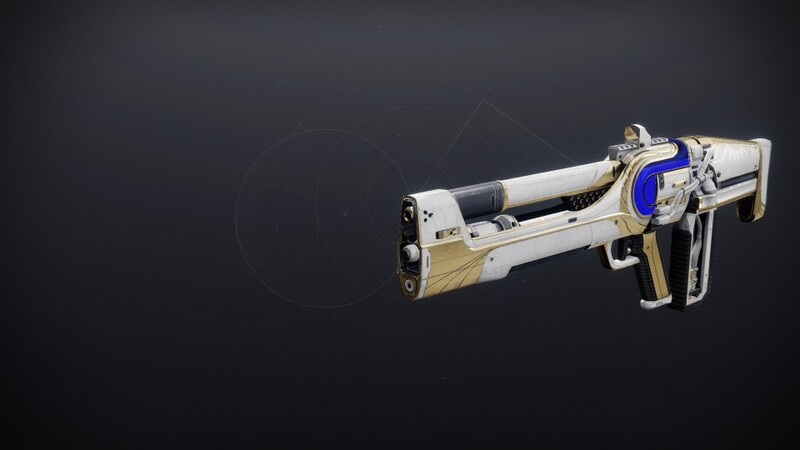 This image is a screenshot of a weapon from the Destiny series of first-person shooter video games developed by Bungie Studios and published by Bungie or Activision. It falls under the screenshot category for a copyrighted computer game or video game, and the copyright for it is most likely held by the company that developed the game. It is believed that the use of a limited number of web-resolution screenshots: