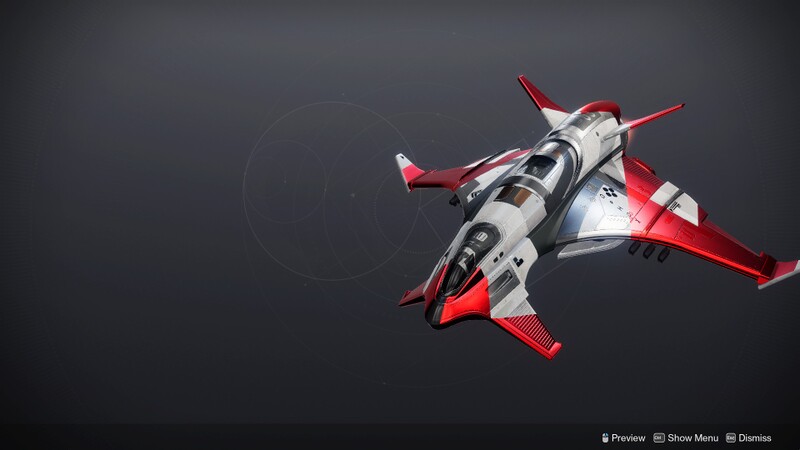 This image is a screenshot of a vehicle from the Destiny series of first-person shooter video games developed by Bungie Studios and published by Bungie or Activision. It falls under the screenshot category for a copyrighted computer game or video game, and the copyright for it is most likely held by the company that developed the game. It is believed that the use of a limited number of web-resolution screenshots: