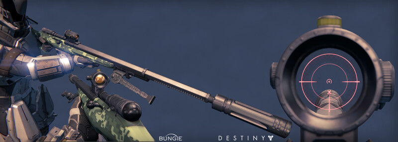 This image is a screenshot of a weapon from the Destiny series of first-person shooter video games developed by Bungie Studios and published by Bungie or Activision. It falls under the screenshot category for a copyrighted computer game or video game, and the copyright for it is most likely held by the company that developed the game. It is believed that the use of a limited number of web-resolution screenshots: