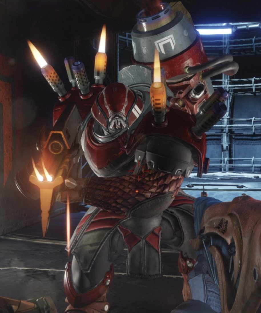 This image is a screenshot of a character or AI unit from the Destiny series of first-person shooter video games developed by Bungie Studios and published by Bungie or Activision. It falls under the screenshot category for a copyrighted computer game or video game, and the copyright for it is most likely held by the company that developed the game. It is believed that the use of a limited number of web-resolution screenshots: