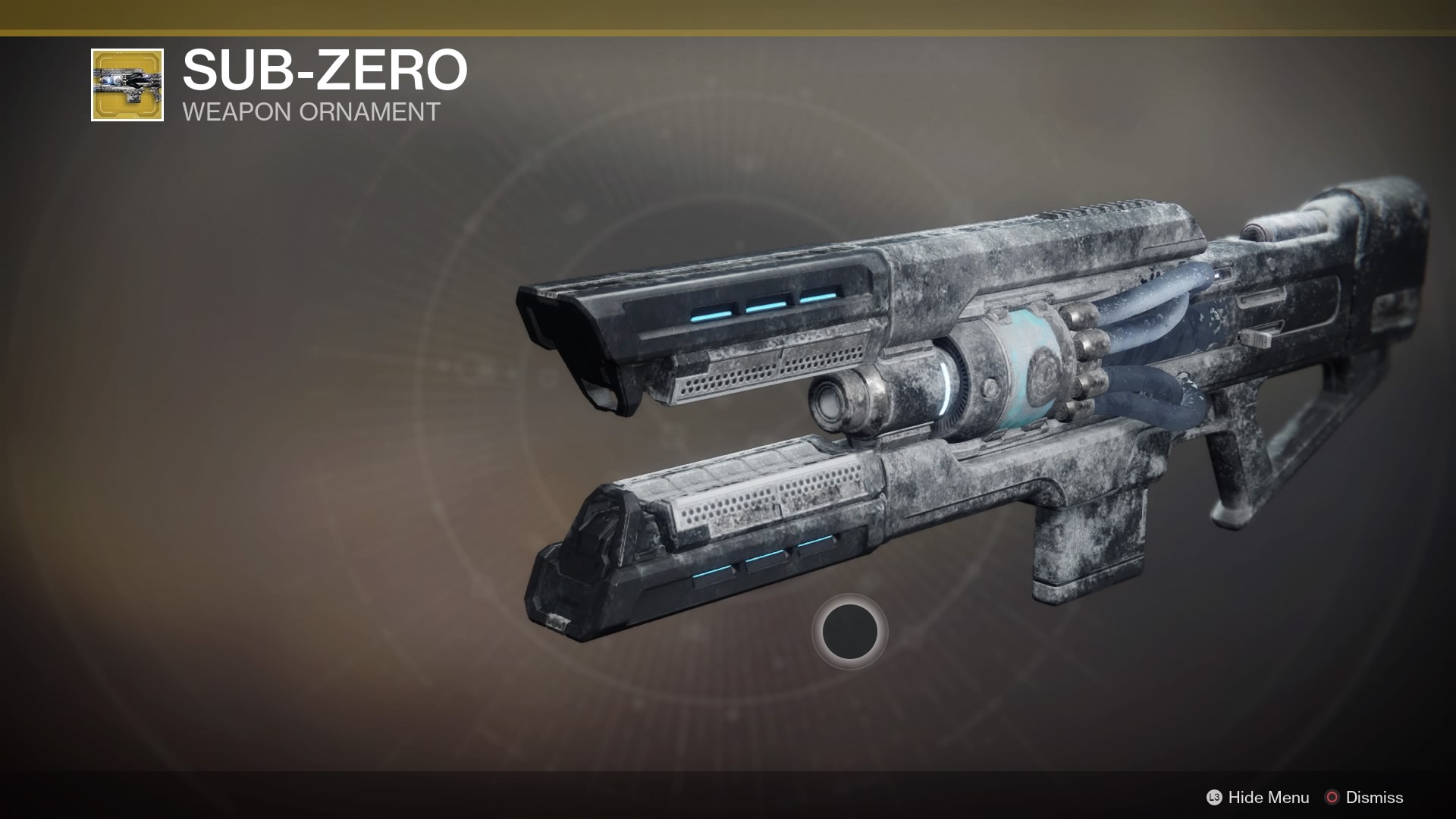 This image is a screenshot of a weapon from the Destiny series of first-person shooter video games developed by Bungie Studios and published by Bungie or Activision. It falls under the screenshot category for a copyrighted computer game or video game, and the copyright for it is most likely held by the company that developed the game. It is believed that the use of a limited number of web-resolution screenshots: