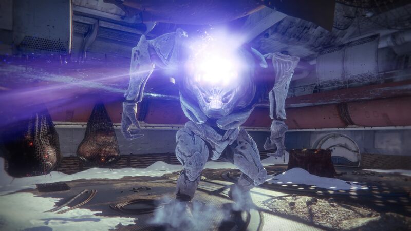 This image is a screenshot of a character or AI unit from the Destiny series of first-person shooter video games developed by Bungie Studios and published by Bungie or Activision. It falls under the screenshot category for a copyrighted computer game or video game, and the copyright for it is most likely held by the company that developed the game. It is believed that the use of a limited number of web-resolution screenshots: