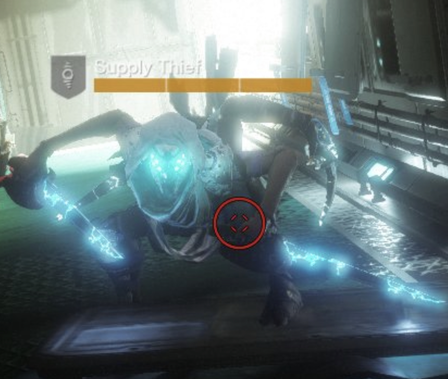 This image is a screenshot of a character or AI unit from the Destiny series of first-person shooter video games developed by Bungie Studios and published by Bungie or Activision. It falls under the screenshot category for a copyrighted computer game or video game, and the copyright for it is most likely held by the company that developed the game. It is believed that the use of a limited number of web-resolution screenshots: