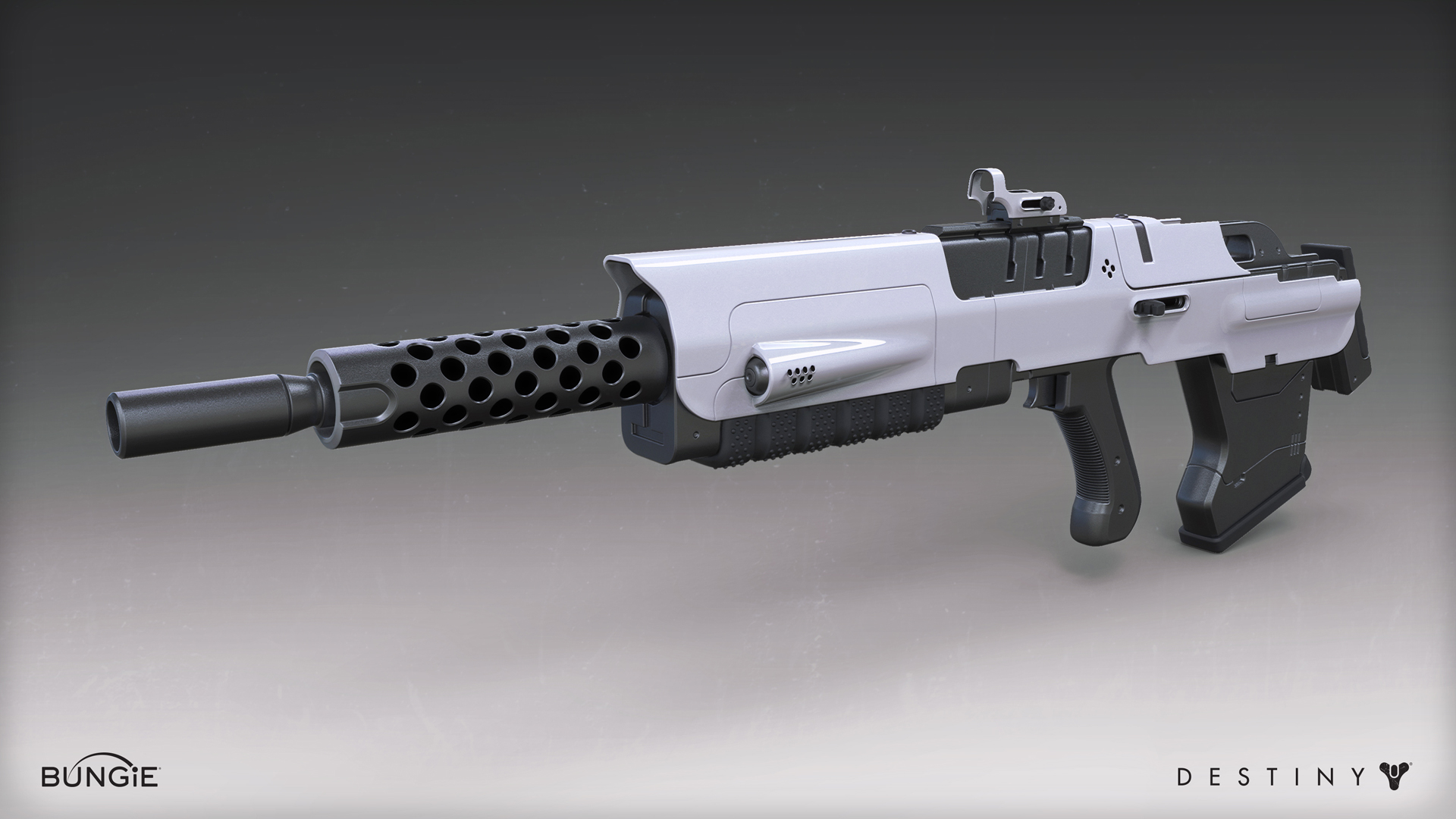 This image is a screenshot of a weapon from the Destiny series of first-person shooter video games developed by Bungie Studios and published by Bungie or Activision. It falls under the screenshot category for a copyrighted computer game or video game, and the copyright for it is most likely held by the company that developed the game. It is believed that the use of a limited number of web-resolution screenshots: