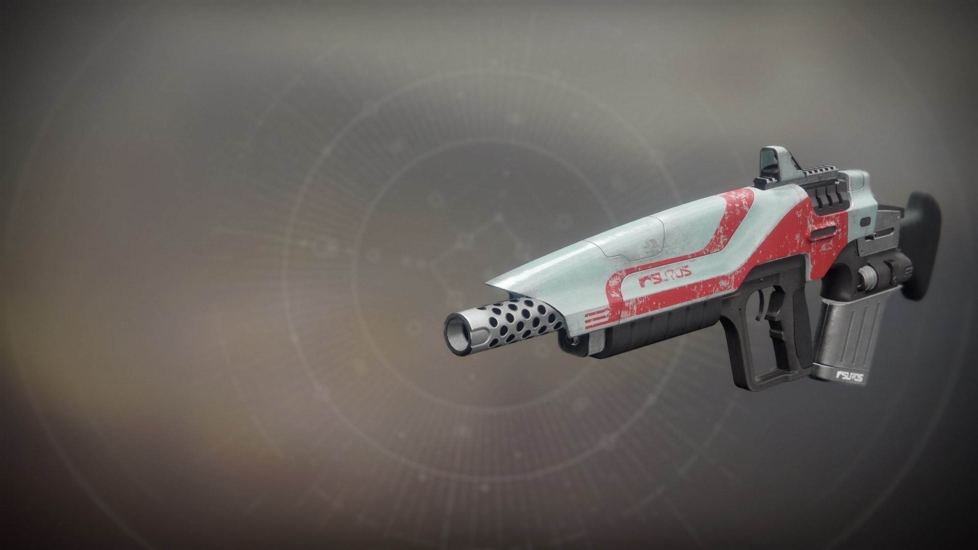 This image is a screenshot of a weapon from the Destiny series of first-person shooter video games developed by Bungie Studios and published by Bungie or Activision. It falls under the screenshot category for a copyrighted computer game or video game, and the copyright for it is most likely held by the company that developed the game. It is believed that the use of a limited number of web-resolution screenshots: