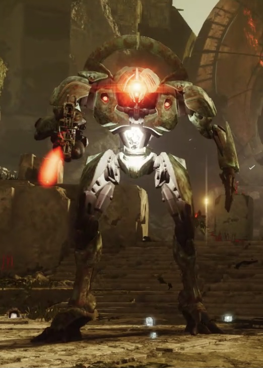 This image is a screenshot of a character or AI unit from the Destiny series of first-person shooter video games developed by Bungie Studios and published by Bungie or Activision. It falls under the screenshot category for a copyrighted computer game or video game, and the copyright for it is most likely held by the company that developed the game. It is believed that the use of a limited number of web-resolution screenshots:
