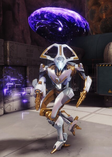 This image is a screenshot of a character or AI unit from the Destiny series of first-person shooter video games developed by Bungie Studios and published by Bungie or Activision. It falls under the screenshot category for a copyrighted computer game or video game, and the copyright for it is most likely held by the company that developed the game. It is believed that the use of a limited number of web-resolution screenshots: