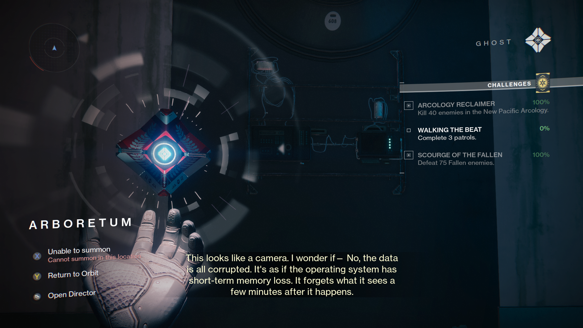 Ghost: "This looks like a camera. I wonder if - No, the data is all corrupted. It's as if the operating system has short-term memory loss. It forgets what it sees a few minutes after it happens."