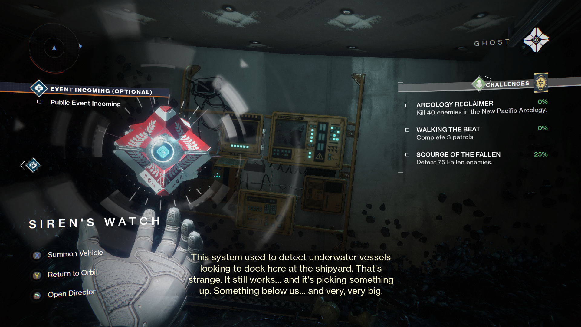 Ghost: "This system used to detect underwater vessels looking to dock at the shipyard. Thats strange. It still works... and it's picking up something below us... and very, very big."
