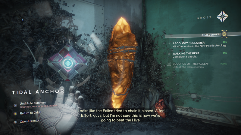 Ghost: "Looks like the Fallen tried to chain it closed. A for effort, guys, butI'm not sure this is how we're going to beat the Hive."