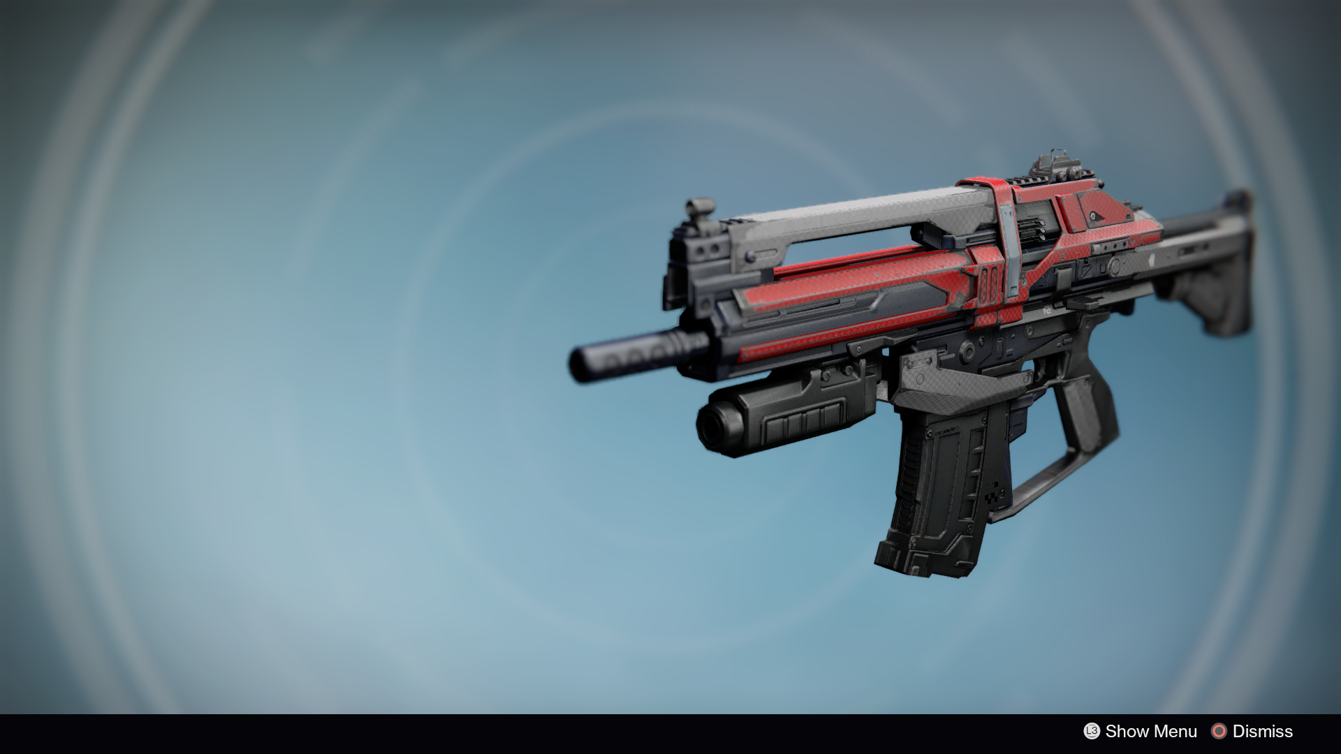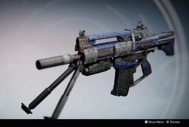 This image is a screenshot of a weapon from the Destiny series of first-person shooter video games developed by Bungie Studios and published by Bungie or Activision. It falls under the screenshot category for a copyrighted computer game or video game, and the copyright for it is most likely held by the company that developed the game. It is believed that the use of a limited number of web-resolution screenshots: