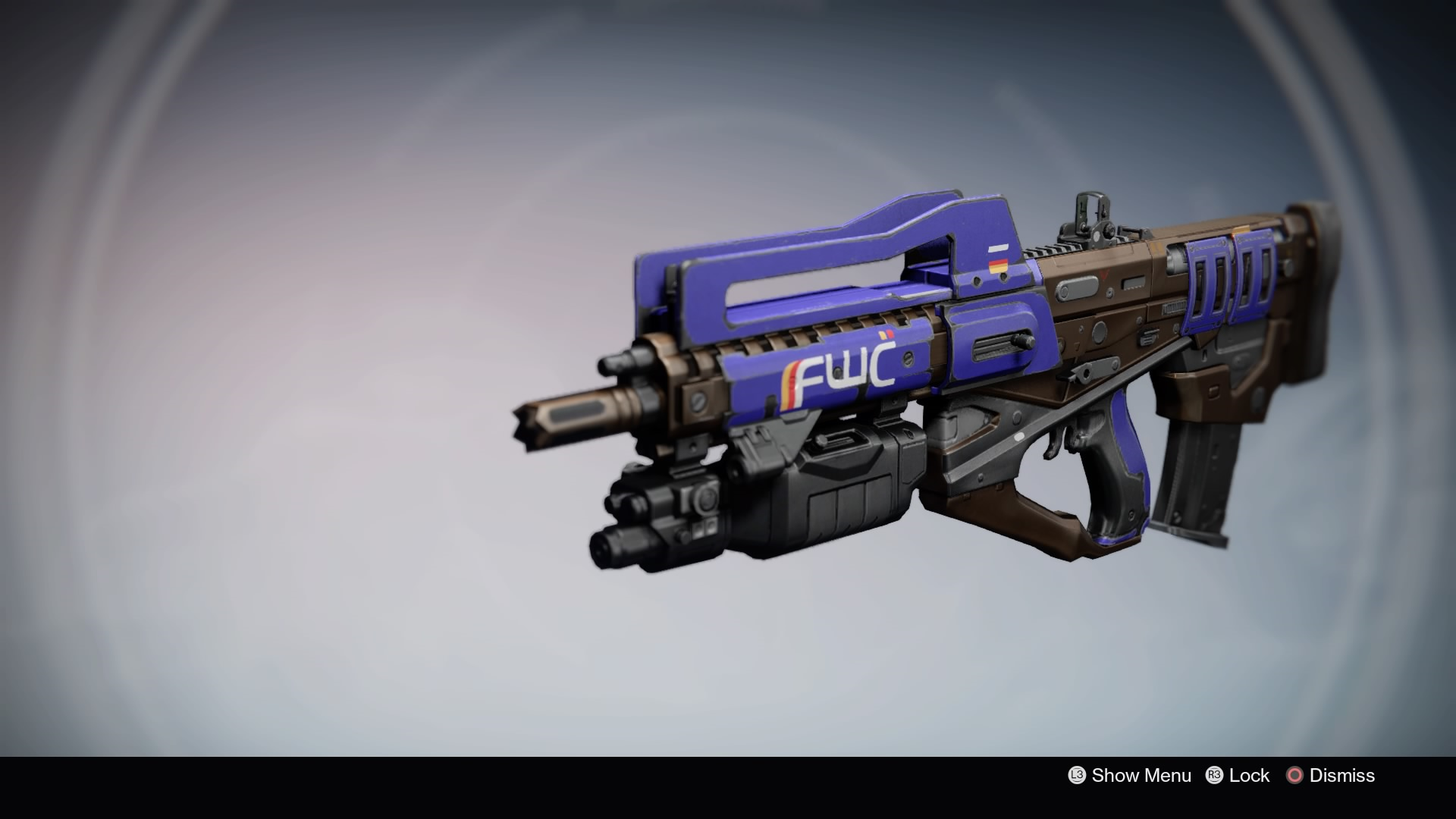 This image is a screenshot of a weapon from the Destiny series of first-person shooter video games developed by Bungie Studios and published by Bungie or Activision. It falls under the screenshot category for a copyrighted computer game or video game, and the copyright for it is most likely held by the company that developed the game. It is believed that the use of a limited number of web-resolution screenshots: