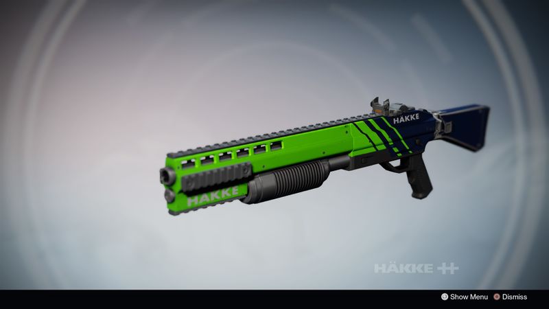This image is a screenshot of a weapon from the Destiny series of first-person shooter video games developed by Bungie Studios and published by Bungie or Activision. It falls under the screenshot category for a copyrighted computer game or video game, and the copyright for it is most likely held by the company that developed the game. It is believed that the use of a limited number of web-resolution screenshots: