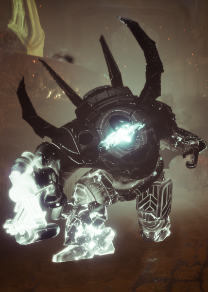 This image is a screenshot of a character or AI unit from the Destiny series of first-person shooter video games developed by Bungie Studios and published by Bungie or Activision. It falls under the screenshot category for a copyrighted computer game or video game, and the copyright for it is most likely held by the company that developed the game. It is believed that the use of a limited number of web-resolution screenshots: