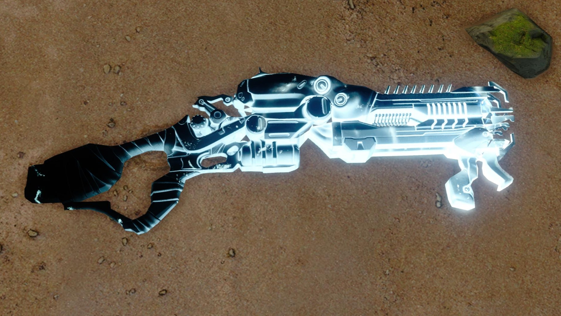 This image is a screenshot of a weapon from the Destiny series of first-person shooter video games developed by Bungie Studios and published by Bungie or Activision. It falls under the screenshot category for a copyrighted computer game or video game, and the copyright for it is most likely held by the company that developed the game. It is believed that the use of a limited number of web-resolution screenshots: