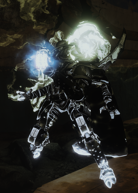 This image is a screenshot of a character or AI unit from the Destiny series of first-person shooter video games developed by Bungie Studios and published by Bungie or Activision. It falls under the screenshot category for a copyrighted computer game or video game, and the copyright for it is most likely held by the company that developed the game. It is believed that the use of a limited number of web-resolution screenshots: