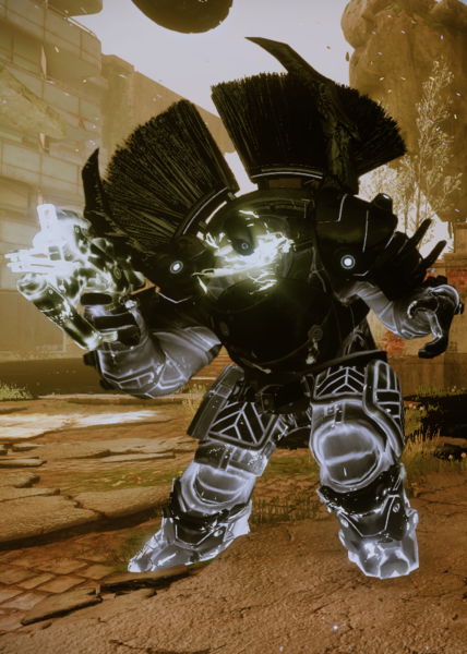 This image is a screenshot of a character or AI unit from the Destiny series of first-person shooter video games developed by Bungie Studios and published by Bungie or Activision. It falls under the screenshot category for a copyrighted computer game or video game, and the copyright for it is most likely held by the company that developed the game. It is believed that the use of a limited number of web-resolution screenshots: