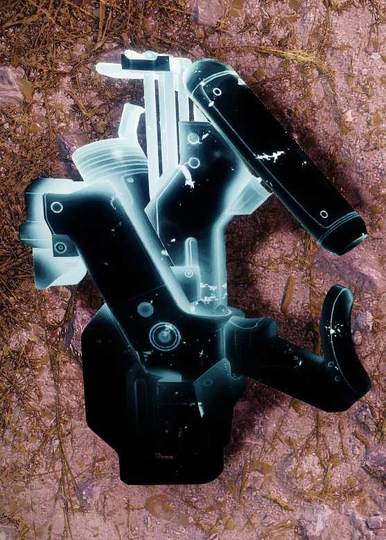 This image is a screenshot of a weapon from the Destiny series of first-person shooter video games developed by Bungie Studios and published by Bungie or Activision. It falls under the screenshot category for a copyrighted computer game or video game, and the copyright for it is most likely held by the company that developed the game. It is believed that the use of a limited number of web-resolution screenshots: