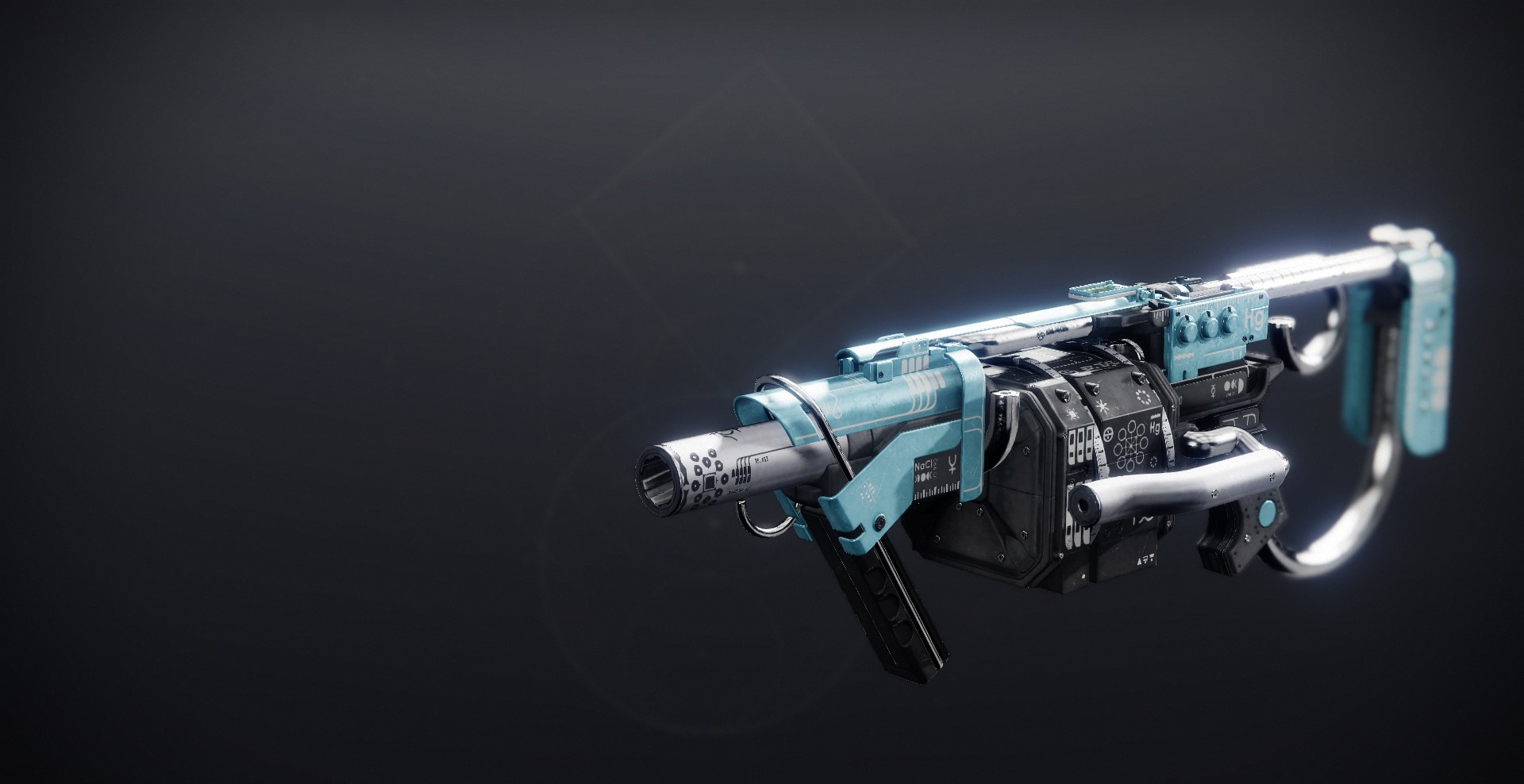 This image is a screenshot of a weapon from the Destiny series of first-person shooter video games developed by Bungie Studios and published by Bungie or Activision. It falls under the screenshot category for a copyrighted computer game or video game, and the copyright for it is most likely held by the company that developed the game. It is believed that the use of a limited number of web-resolution screenshots: