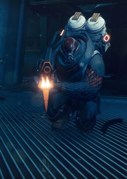 This image is a screenshot of a character or AI unit from the Destiny series of first-person shooter video games developed by Bungie Studios and published by Bungie or Activision. It falls under the screenshot category for a copyrighted computer game or video game, and the copyright for it is most likely held by the company that developed the game. It is believed that the use of a limited number of web-resolution screenshots: