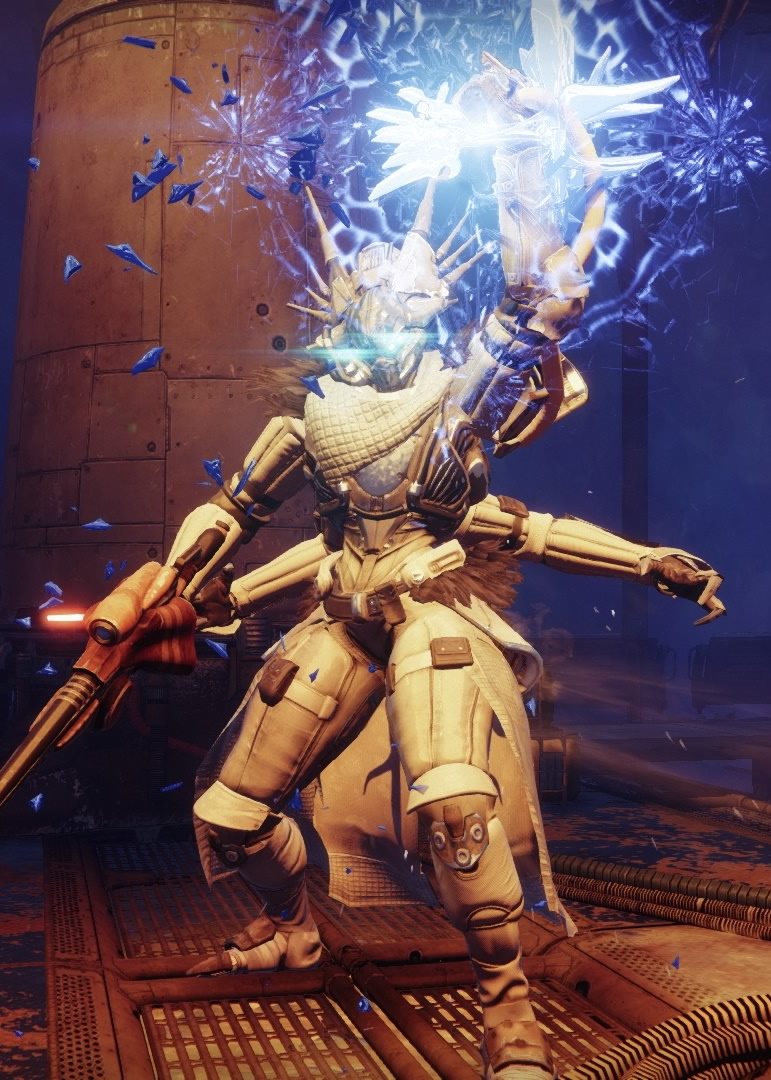 This image is a screenshot of a character or AI unit from the Destiny series of first-person shooter video games developed by Bungie Studios and published by Bungie or Activision. It falls under the screenshot category for a copyrighted computer game or video game, and the copyright for it is most likely held by the company that developed the game. It is believed that the use of a limited number of web-resolution screenshots: