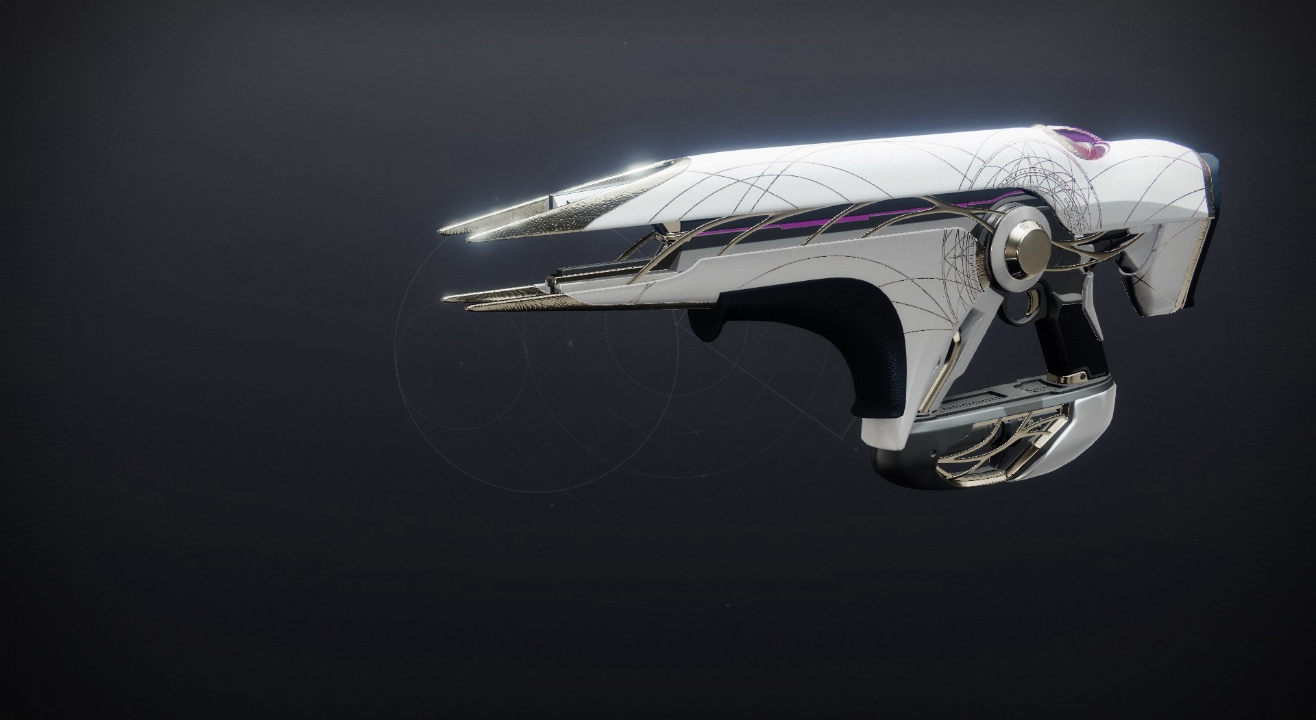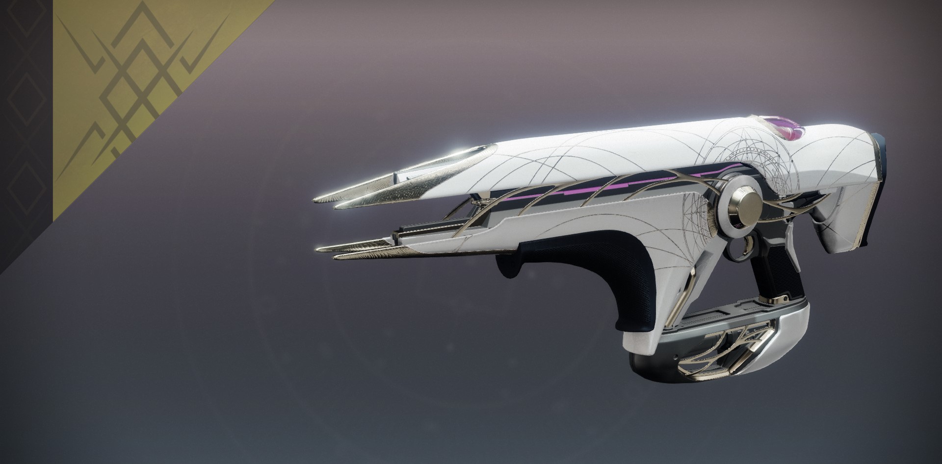 This image is a screenshot of a weapon from the Destiny series of first-person shooter video games developed by Bungie Studios and published by Bungie or Activision. It falls under the screenshot category for a copyrighted computer game or video game, and the copyright for it is most likely held by the company that developed the game. It is believed that the use of a limited number of web-resolution screenshots: