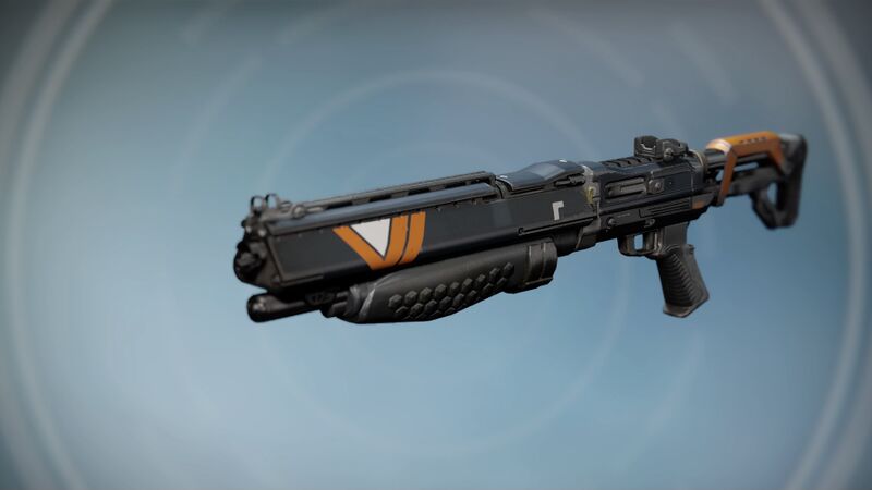 This image is a screenshot of a weapon from the Destiny series of first-person shooter video games developed by Bungie Studios and published by Bungie or Activision. It falls under the screenshot category for a copyrighted computer game or video game, and the copyright for it is most likely held by the company that developed the game. It is believed that the use of a limited number of web-resolution screenshots: